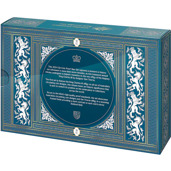 The 2024 Six-Coin Proof Year Set captures a moment in history not witnessed in more than 70 years, as this treasured annual release undergoes a majestic transition to the new effigy of His Majesty, King Charles III by designer Daniel Thorne.