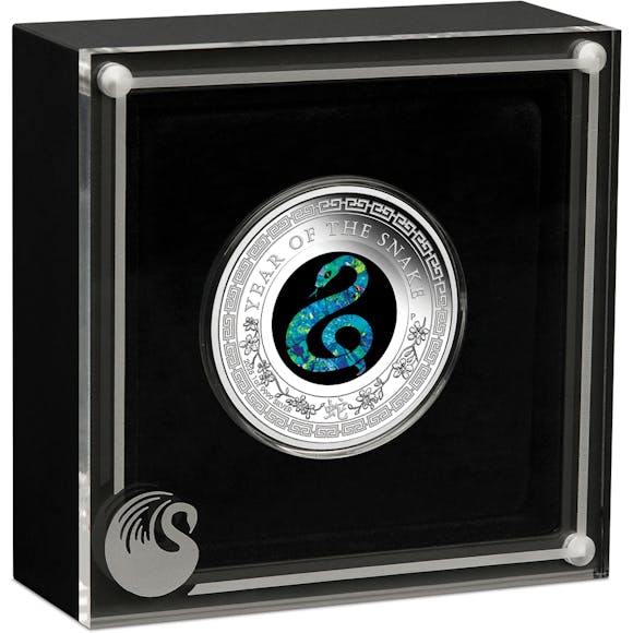 From the prestigious Australian Opal Lunar Series, this 2025 Year of the Snake coin features a spectacular centrepiece crafted from authentic Australian opal.